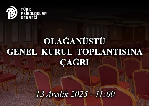 Değerli Üyelerimiz ve Meslektaşlarımız, Türk Psikologlar Derneği Genel Kurulu, 20 Aralık 2025 Cumartesi günü İ...